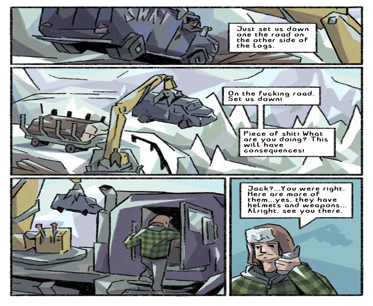This 67 page comic tells the story of the lumberjack Jack. One evening, he meets a young woman in a dicey situation. He decides to help her out. Soon he realizes in what kind of situation he got himself into. However he faces the adversities he sees himself confronted with during a particularly tough night.